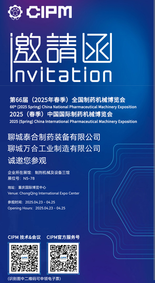 制藥裝備有限公司&聊城萬合工業(yè)制造有限公司(壓片機(jī)專業(yè)制造商)攜優(yōu)質(zhì)設(shè)備參會(huì),展示最具創(chuàng)造力的產(chǎn)品和服務(wù),竭誠(chéng)邀請(qǐng)您蒞臨現(xiàn)場(chǎng)參觀、指導(dǎo)!